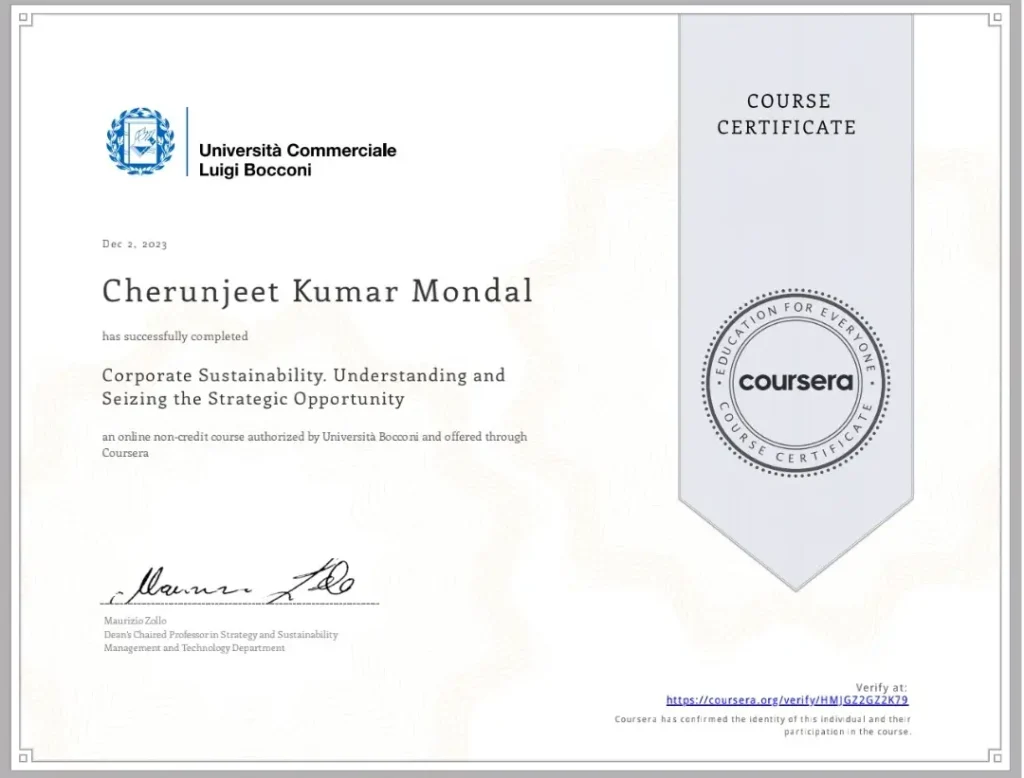 Corporate Sustainability – University of Bocconi, Italy (Oct–Dec 2023):