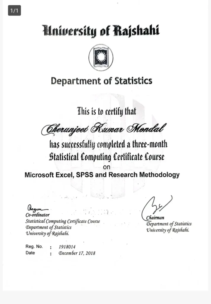 University of Rajshahi – Statistical Computing & Research Methodology (2018)