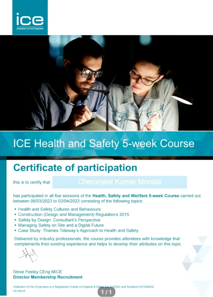 Completed a structured 5-week CPD program by the Institution of Civil Engineers (ICE), UK).